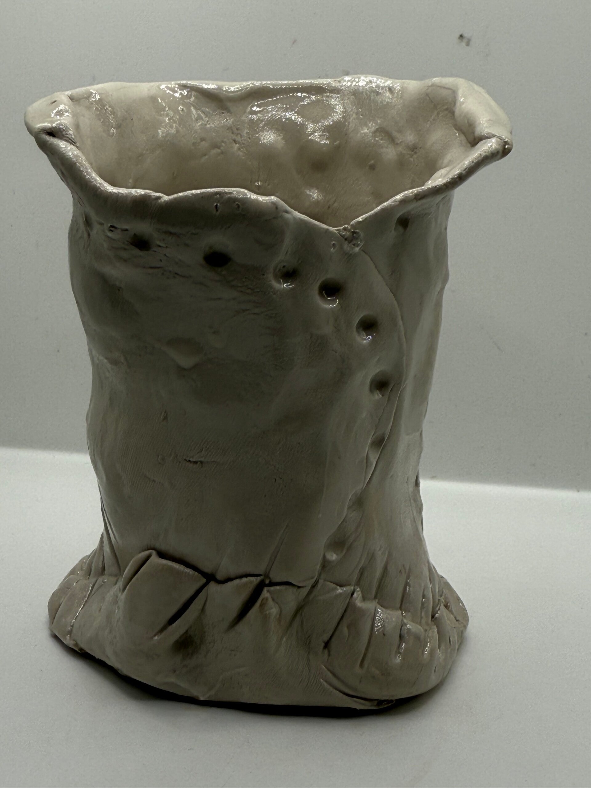Drawing inspiration from ancient vessels, ritual objects, and early human mark-making, the series rejects modern perfection in favor of ancestral presence. These works feel unearthed rather than produced, as if they belong to a continuum of human touch spanning millennia. Air and Earth becomes a record of time, labor, and intention, holding both fragility and endurance in balance.